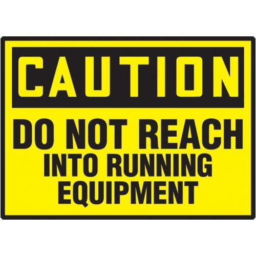 Accuform, LEQM624XVE, 3-1/2" x 5" OSHA Caution Safety Label "Do Not Reach Into Running Equipment" Adhesive Dura Vinyl