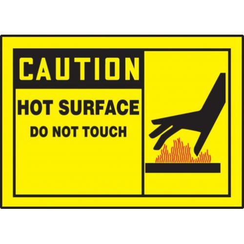 Accuform, LEQM647XVE, 3-1/2" x 5" OSHA Caution Safety Label "Hot Surface Do Not Touch" Adhesive Dura Vinyl