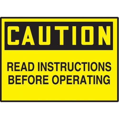 Accuform, LEQM658XVE, 3-1/2" x 5" OSHA Caution Safety Label "Read Instructions Before Operating" Adhesive Dura Vinyl
