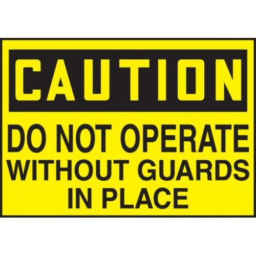 Accuform, LEQM788XVE, 3-1/2" x 5" OSHA Caution Equipment Safety Label "Do Not Operate without Guards In Place" Adhesive Dura Vinyl
