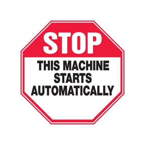 Accuform, LEQM948XVE, 4" x 4" Equipment Safety Label "This Machine Starts Automatically" Adhesive Dura Vinyl