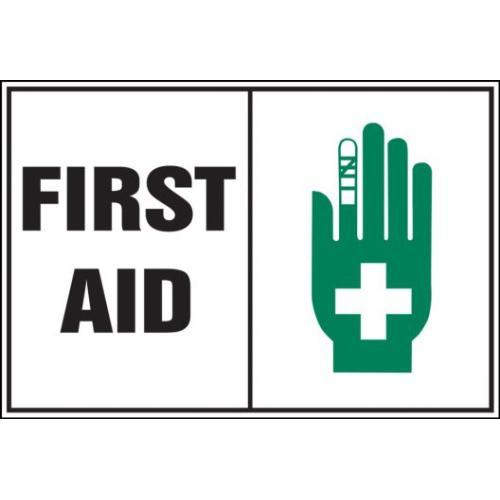 Accuform, LFSD500XVE, 3-1/2" x 5" Safety Label "First Aid" Adhesive Dura Vinyl
