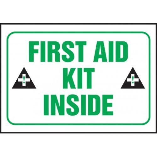 Accuform, LFSD509XVE, 3-1/2" x 5" Safety Label "First Aid Kit Inside" Adhesive Vinyl with Hanger