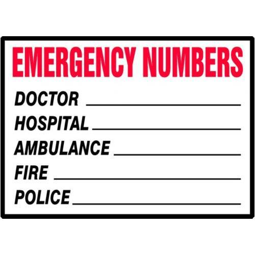 Accuform, LFSD532LPM, 3-1/2" x 5" Safety Label "Emergency Numbers" Self-Laminating Label