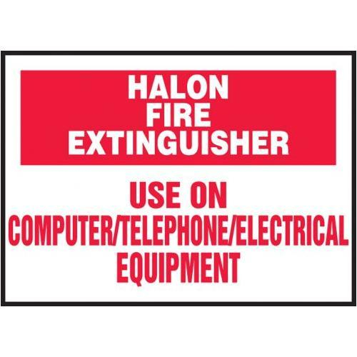 Accuform, LFXG453VSP, 3-1/2" x 5" Fire Safety Label "Halon Fire Extinguisher Use on Computer / Telephone / Electrical Equipment" Adhesive Vinyl
