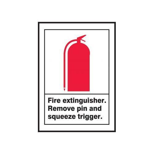 Size: 5" x 3-1/2", Package Qty: Each, Legend: Fire Extinguisher. Remove Pin and Squeeze Trigger.