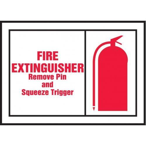 Size: 3-1/2" x 5", Package Qty: Each, Legend: Fire Extinguisher Remove Pin ...