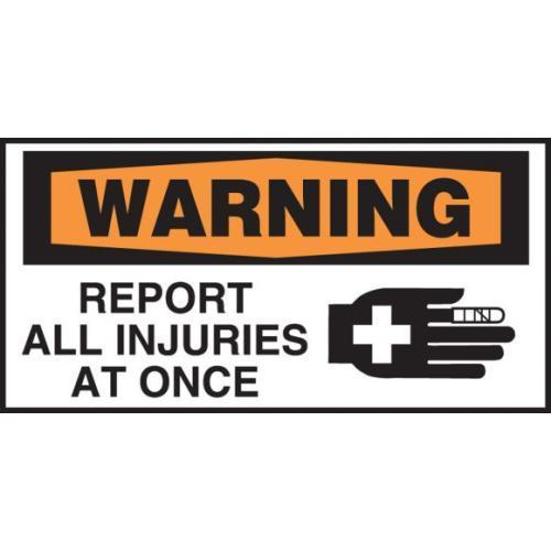 Accuform, LGNF335XVE, 1-1/2" x 3" OSHA Warning Safety Label "Report All Injuries at Once" Adhesive Dura Vinyl