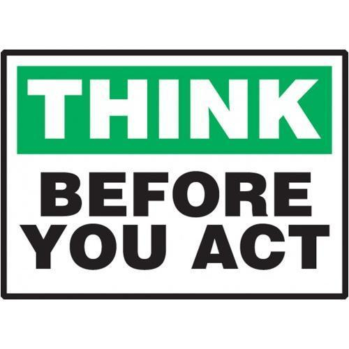 Accuform, LGNF942VSP, 3-1/2" x 5" Safety Incentive Label "Think Before You Act" Adhesive Vinyl