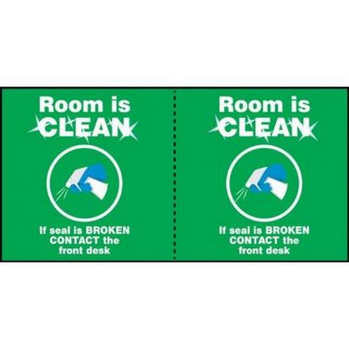 Accuform, LHSK006RM1, Door Seal Label "Room Is Clean if Seal Is Broken Contact the Front Desk", Green, 2-1/2" x 5"