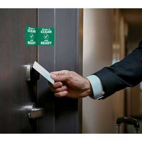 Accuform, LHSK007RM1, Door Seal Label "Room Is Clean and Ready", Green, 2-1/2" x 5"
