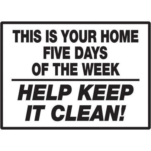 Accuform, LHSK501XVE, 3-1/2" x 5" Safety Label "This Is Your Home Five Days Of the Week - Help Keep It Clean!" Adhesive Dura Vinyl