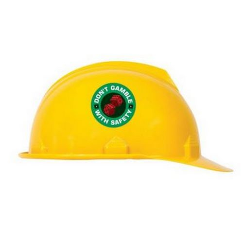 Accuform, LHTL184, Hard Hat Sticker "Don't Gamble With Safety", Adhesive Vinyl, 2-1/4"