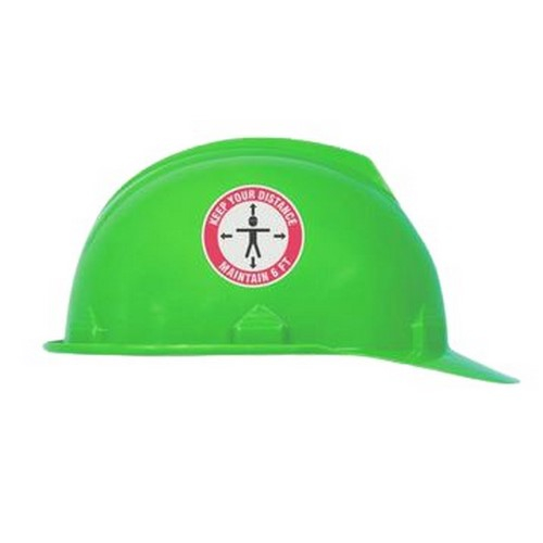 Accuform, LHTL272, Hard Hat Sticker "Keep Ythe Distance Maintain 6 FT" with Hard Hat Hat Human and Arrows Symbol, Adhesive Vinyl, 2-1/4" x 2-1/4"