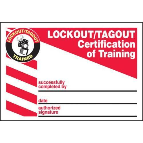 Accuform, LKC207LPP, 2-1/8" x 3-3/8" Lockout/Tagout Label "Lockout / Tagout Certification Of Training" Self-Laminating RP-Plastic