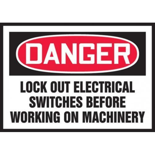Accuform, LLKT105VSP, 3-1/2" x 5" Lockout / Tagout Safety Label "Lock Out Electrical Switches Before Working on Machinery" Adhesive Vinyl