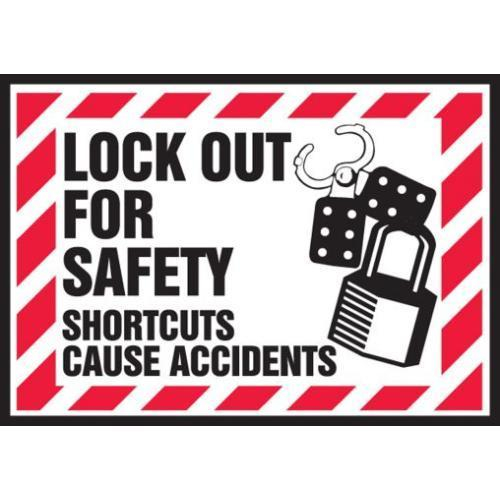 Accuform, LLKT501XVE, 3-1/2" x 5" Lockout / Tagout Safety Label "Lock Out for Safety Shortcuts Cause Accidents" Adhesive Dura Vinyl
