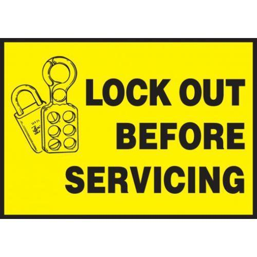 Accuform, LLKT506VSP, 3-1/2" x 5" Lockout / Tagout Safety Label "Lock Out Before Servicing" Adhesive Vinyl