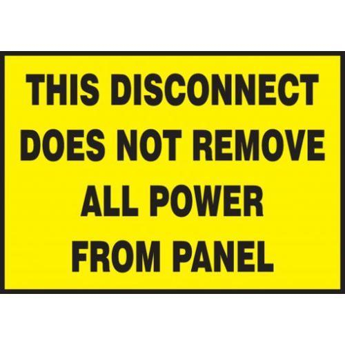 Accuform, LLKT514XVE, 3-1/2" x 5" Lockout / Tagout Safety Label "This Disconnect Does Not Remove All Power From Panel" Adhesive Dura Vinyl