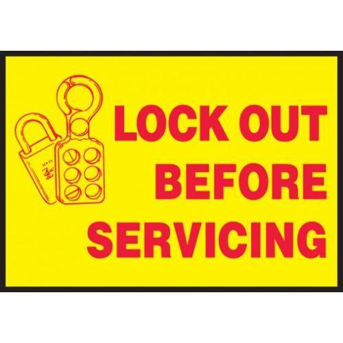 Accuform, LLKT522VSP, 3-1/2" x 5" Lockout / Tagout Safety Label "Lock Out Before Servicing" Adhesive Vinyl