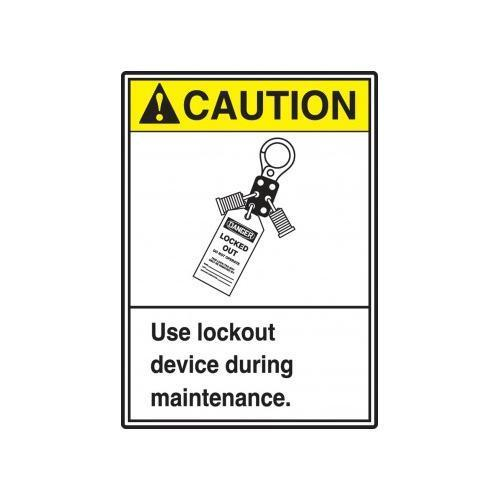 Accuform, LLKT606XVE, 5" x 3-1/2" ANSI ISO Caution Safety Label "Use Lockout Device During Maintenance" Adhesive Dura Vinyl
