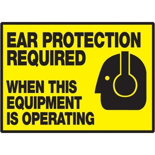 Accuform, LPPE508XVE, 3-1/2" x 5" Safety Label "Ear Protection Required When This Equipment Is Operating" Adhesive Dura Vinyl