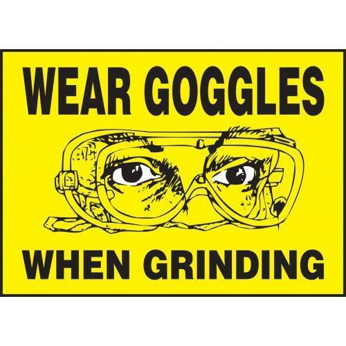 Accuform, LPPE511VSP, 3-1/2" x 5" Safety Label "Wear Goggles When Grinding" Adhesive Vinyl