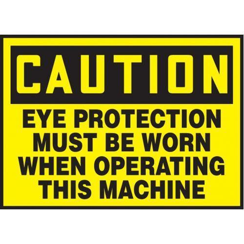 Accuform, LPPE605XVE, 3-1/2" x 5" OSHA Caution Safety Label "Eye Protection Must Be Worn When Operating This Machine" Adhesive Dura Vinyl