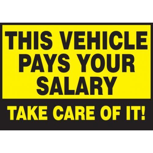 Accuform, LVHR502XVE, 3-1/2" x 5" Safety Label "This Vehicle Pays Your Salary - Take Care Of It!" Adhesive Dura Vinyl