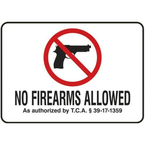 Accuform, MACC503VA, 7" x 10" Tennessee Firearms Safety Sign "No Firearms Allowed - As Authorized by TCA 39-17-359" Aluminum