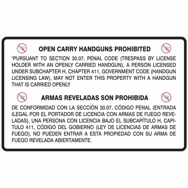 Accuform, MACC511SB, Bilingual Texas 30.06 Regulation Safety Signs: Prohibiting Handguns In A Business Or Other Entity 24" x 36" Aluminum
