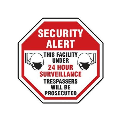 Legend "Security Alert - This Facility Is Under 24 Hour Surveillance - Trespassers Will Be Prosecuted"