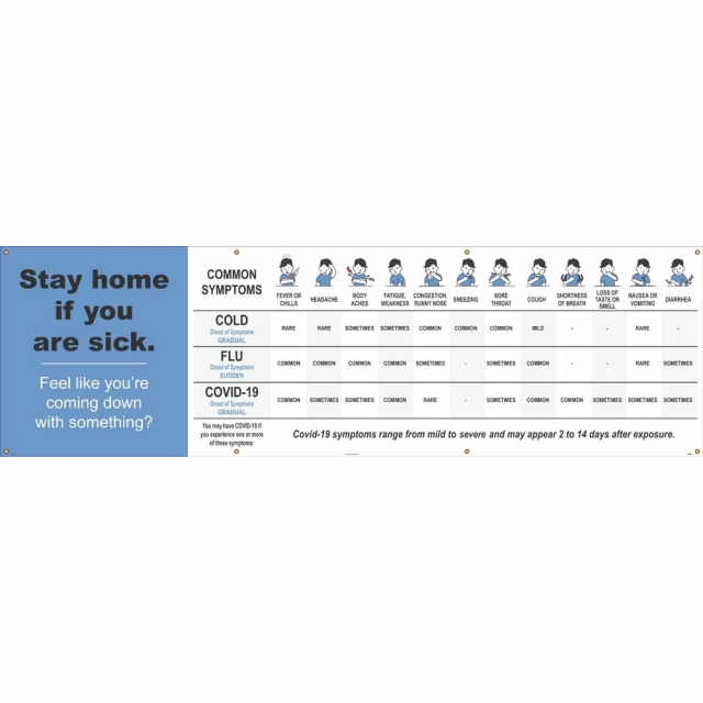 Accuform, MBR070, Safety Banners: Stay Home if You Are Sick. Feel Like You're Coming Down With Something? 3-ft x 10-ft