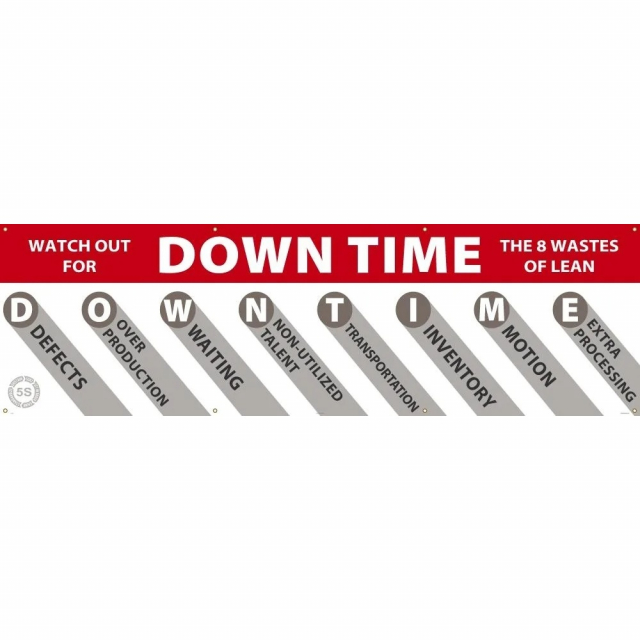 Accuform, MBR086, 5S Banners - Watch Out For Downtime The 8 Wastes Of Lean 3-ft x 5-ft
