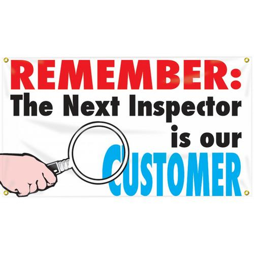 Accuform, MBR408, 28" x 4' Banner with Legend: "Remember The Next Inspector is Our Customer"