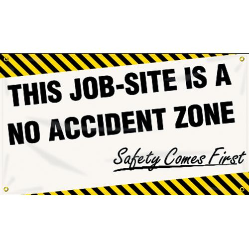 Accuform, MBR416, 28" x 4' Banner with Legend: "This Job-Site is a No Accident Zone Safety Comes First"