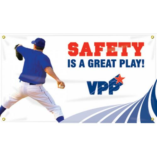 Accuform, MBR470, 28" x 4' VPP Banner with Legend: "Safety is a Great Play"