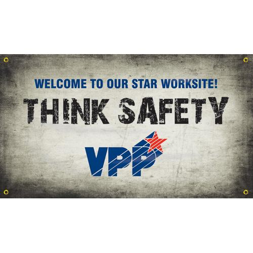 Accuform, MBR481, 28" x 4' VPP Banner with Legend: "Welcome to Our Star Worksite Think Safety"