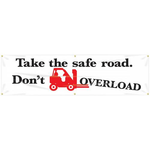 Accuform, MBR883, 28" x 8' Banner with Legend: "Take The Safe Road Don't Overload"