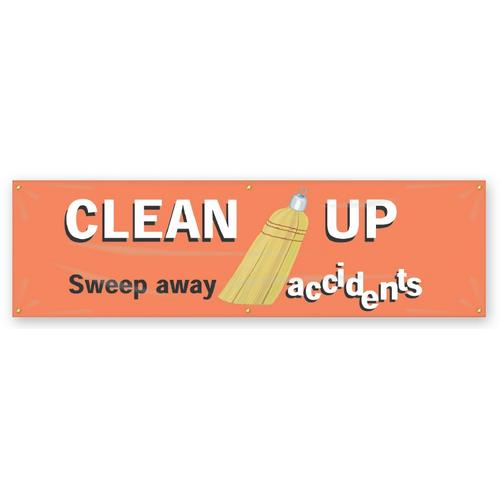 Accuform, MBR958, 28" x 8' Banner with Legend: "Clean Up Sweep Away Accidents"