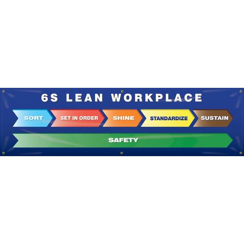 Accuform, MBR983, 6S 28" x 8' Banner with Legend: "6S Lean Workplace Sort, Set in Order, Shine..."