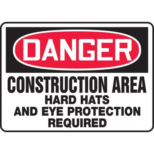 OSHA Sign: "Construction Area Hard Hats and Eye Protection Required"