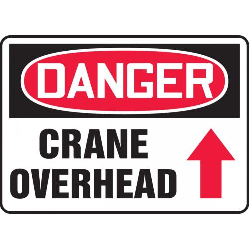 OSHA-compliant sign helps prevent injury by warning of an overhead crane.
