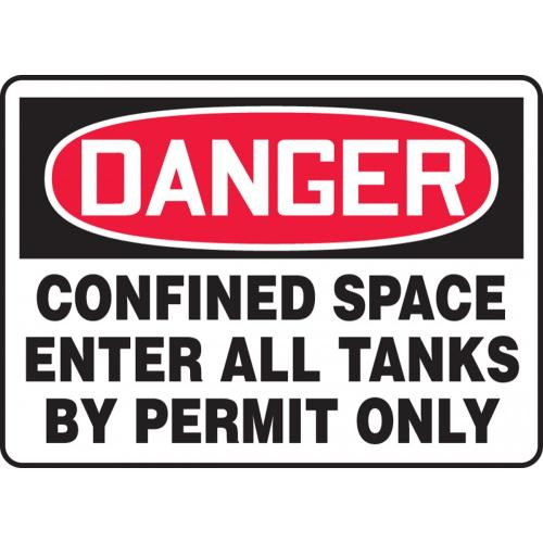 Accuform, MCSP004VS, 7" x 10" Adhesive Vinyl Sign: "Confined Space Enter All Tanks By Permit Only"