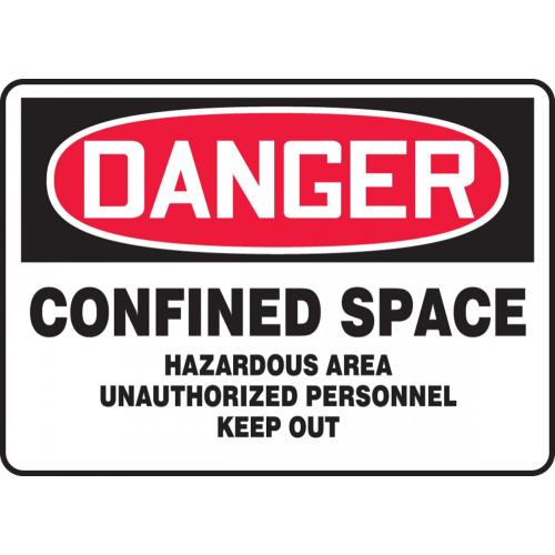 OSHA Sign: "Confined Space Hazardous Area Unauthorized Personnel Keep Out". Warn of hazardous conditions and keep unauthorized personnel at bay with this safety sign.