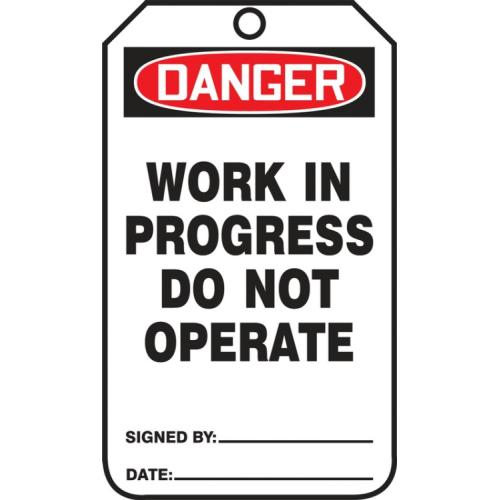 Accuform, MDT012CTP, 5-3/4" x 3-1/4" PF-Cardstock Tag: "Danger Work in Progress...", Pack of 25 pcs