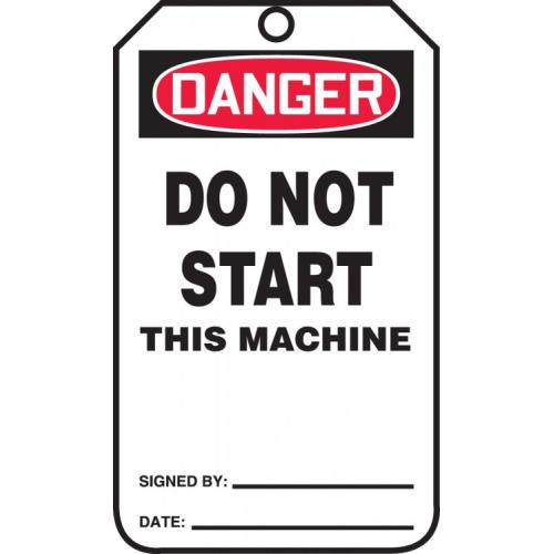 Accuform, MDT124CTP, 5-3/4" x 3-1/4" PF-Cardstock Tag: "Do Not Start This Machine", Pack of 25 pcs