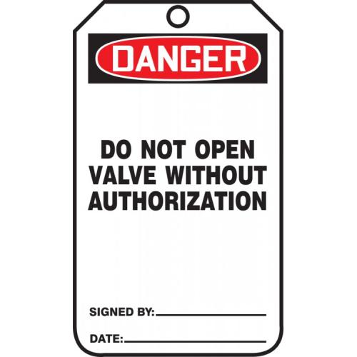 Accuform, MDT141PTM, 5-3/4" x 3-1/4" RP-Plastic Tag: "Do Not Open Valve...", Pack of 5 pcs