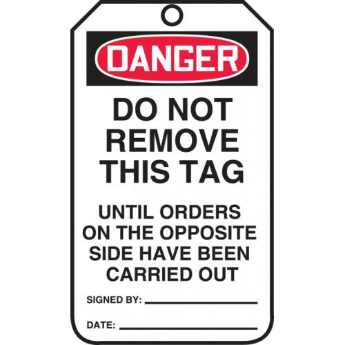 OSHA Tag: "Do Not Remove This Tag Until Orders on The Opposite Side Have Been Carried Out"