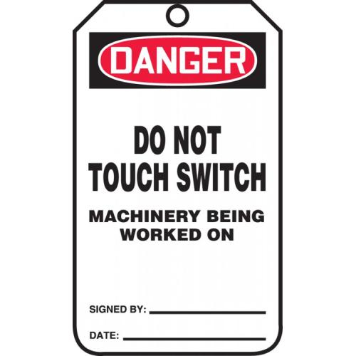 OSHA Tag: "Do Not Touch Switch Machinery Being Worked on"